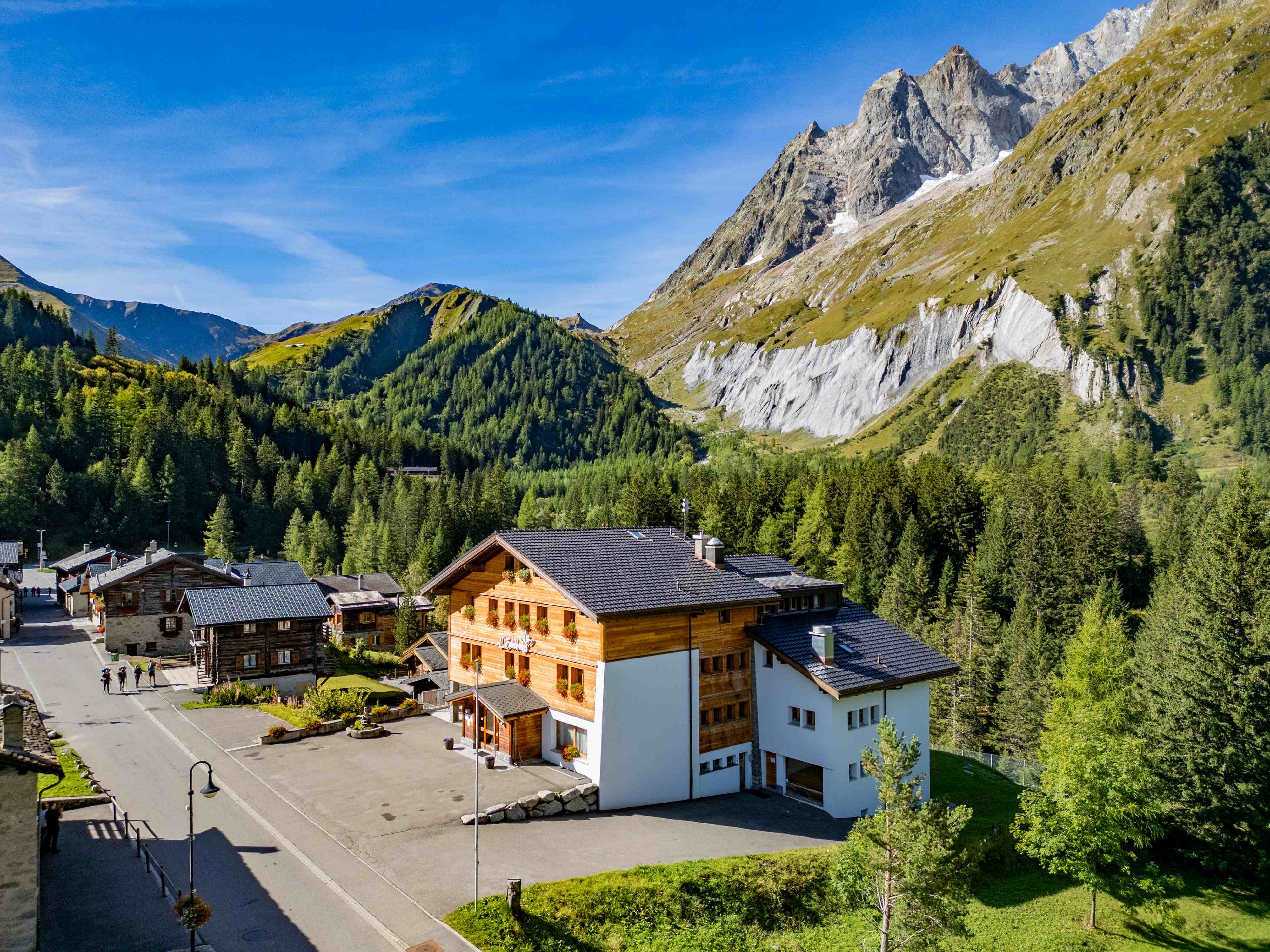 L’Edelweiss is located in the center of the village of La Fouly, right opposite the bus stop.